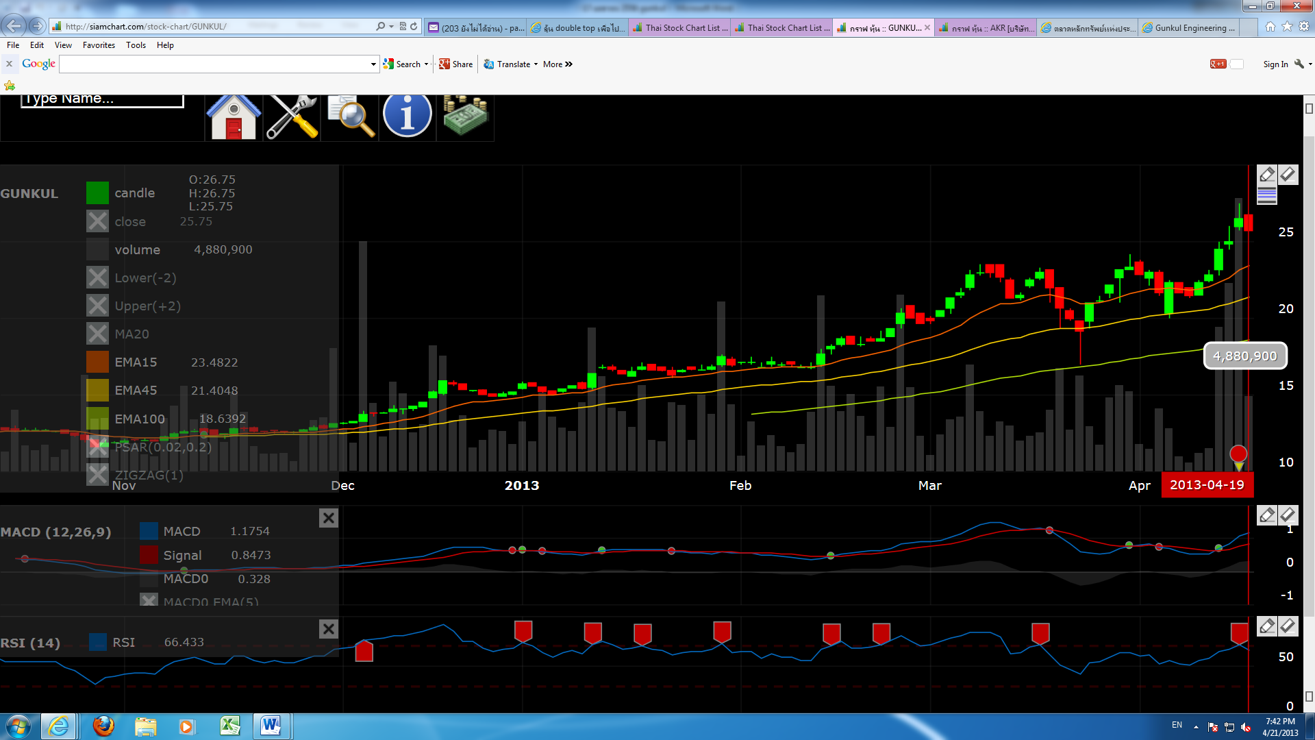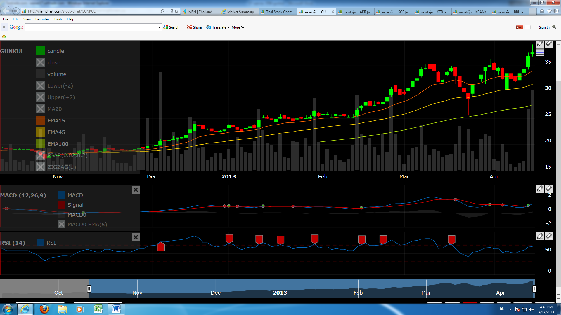 ค่า P/E ปัจจุบันคือ 36.59 ณ เวลา 8.47 วันที่ 10/04/2013