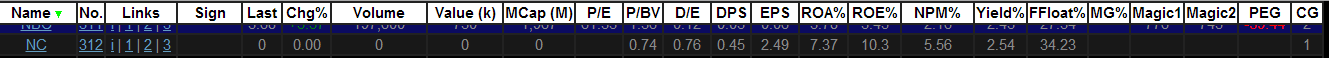 ในหน้า stock list จะไม่แสดง Last Price, PE, Magic 1, Magic 2, PEG ครับ