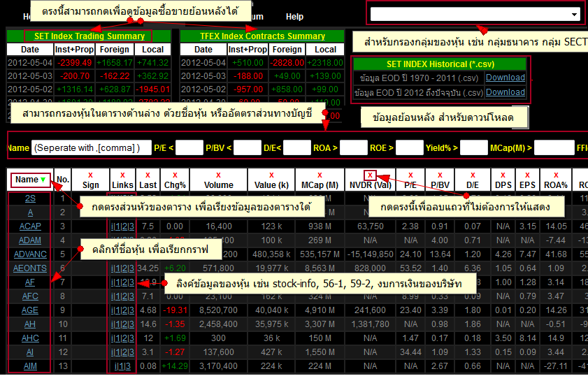 2. การใช้งานหน้าต่างๆใน SiamChart2.4 หน้า Stock