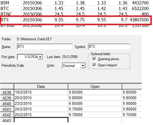 สาเหตุมาจากข้อจำกัดของโปรแกรม metastock เอง
